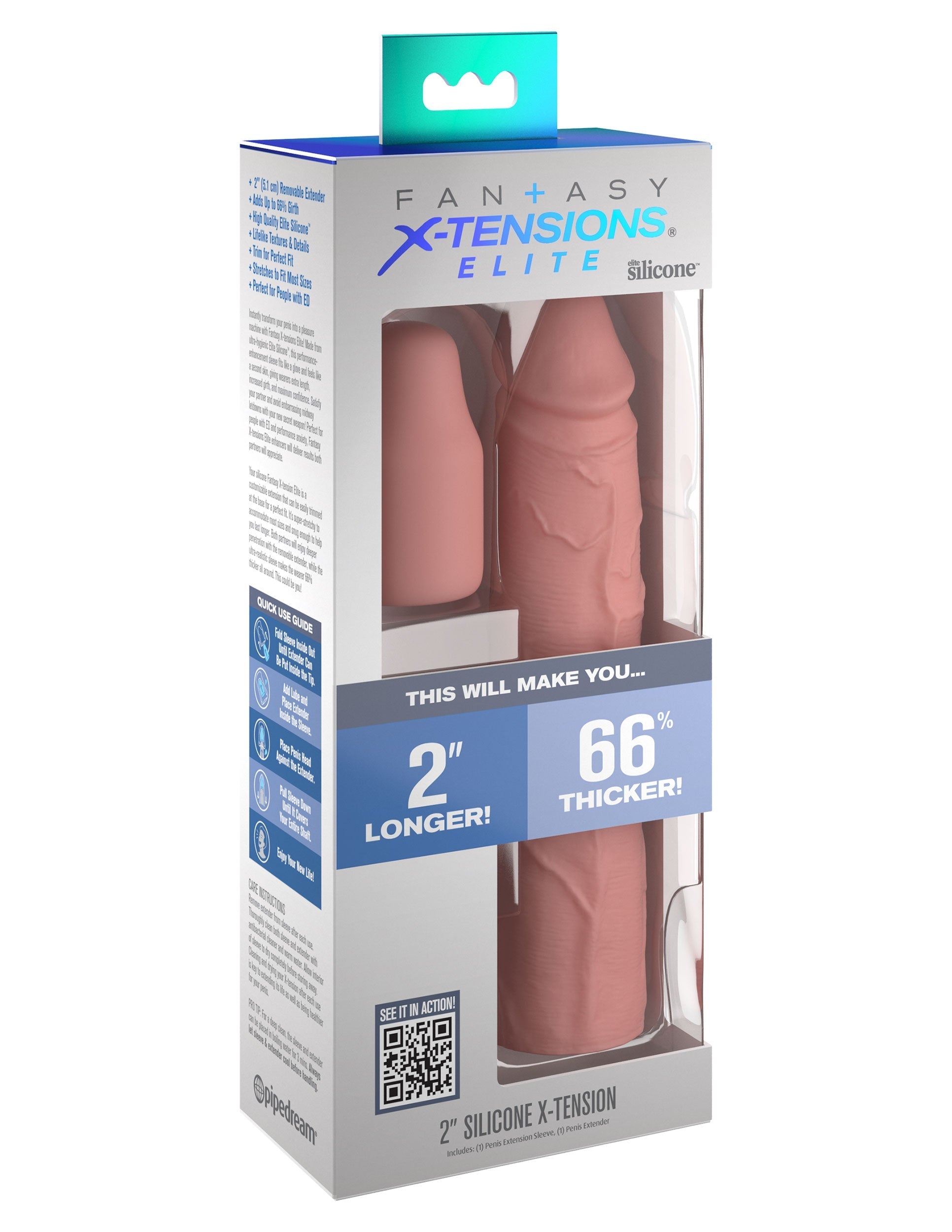 Instantly transform your penis into a pleasure machine with Fantasy X-tensions Elite! Made from ultra-hygienic Elite Silicone™, this performance- enhancement sleeve fits like a glove and feels like a second skin, giving wearers extra length, increased girth, and maximum confidence. Satisfy your partner and avoid embarrassing midway letdowns with your new secret weapon! Perfect for people with ED and performance anxiety, Fantasy X-tensions Elite enhancers will deliver results both partners will appreciate.