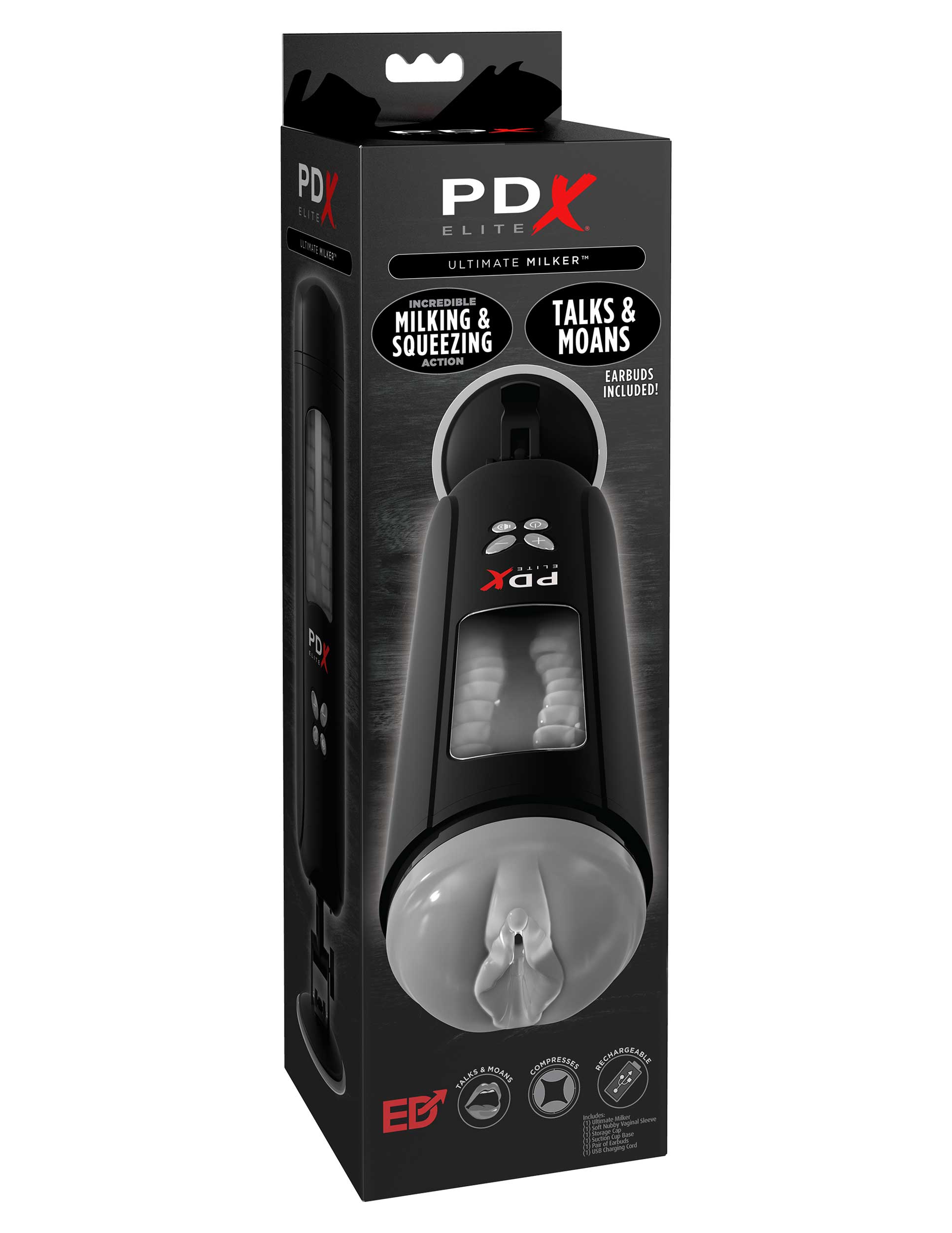 Activate Sound - Press the speaker button to initiate sexy moans once jack-pin headphones are plugged into the Ultimate Milker's base. (Headphones are included.)