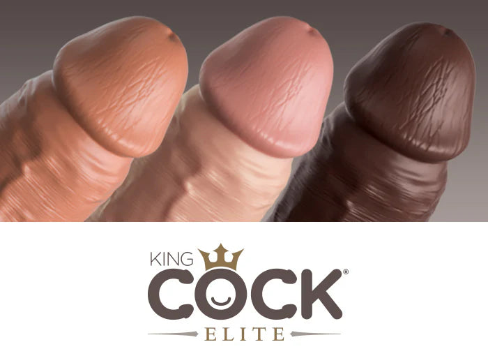 Get ready for the royal treatment! Made from dual-density Elite Silicone and available in three “all-inclusive” skin tones, each King Cock Elite dildo is stiff on the inside with an incredibly soft, life-like look and feel on the outside!